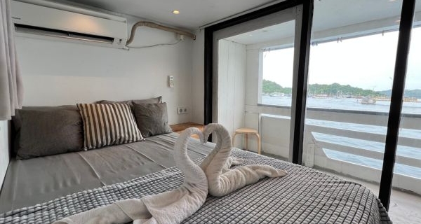 Master Cabin | Master Cabin Double Bed (2 person) Air Conditioner Ocean View Share Shower and Toilet Private Balcony Towels, Soap and Shampoo Located on Main Deck PRICE IDR 3,500,000 / pax minimum book 2 pax *Extra bed IDR 2,650,000 / pax [*1] *Extra pax (Child max 8 y'o w/o bed) IDR 2,150,000 / pax [*1] |