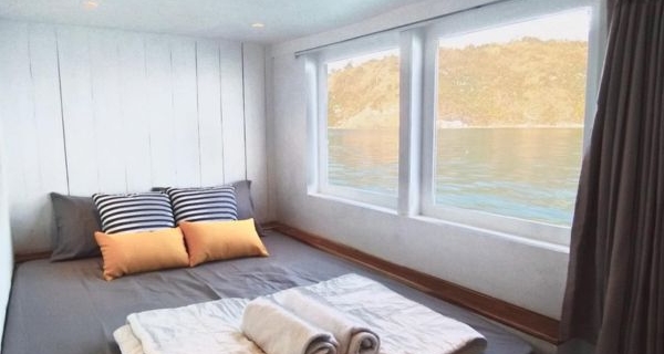 Private Cabin | Private Cabin Double Bed (2 person) Air Conditioner Window View Share Shower and Toilet Towels, Soap and Shampoo Located on Main Deck PRICE IDR 3,300,000 / pax minimum book 2 pax *Extra pax (Child max 8 y'o w/o bed) IDR 2,150,000 / pax [*1] |