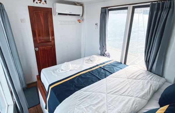 Suite Cabin | Suite Cabin - Double Bed (2 person) - Air Conditioner - Ocean View - Hammock Balcony - Share bathroom + Water Heater - Towels, Soap and Shampoo - Located on Main Deck PRICE IDR 4,750,000 / pax minimum book 2 pax *Extra pax (w/o bed) IDR 2,750,000 / pax [*1] |